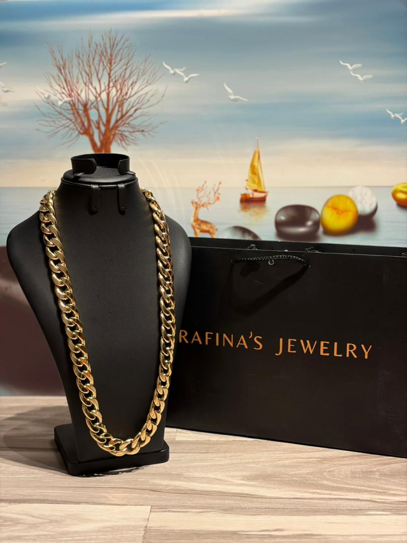 This luxurious 18Karat Gold Cuban Necklace is a bold statement piece crafted from premium 18-karat gold.