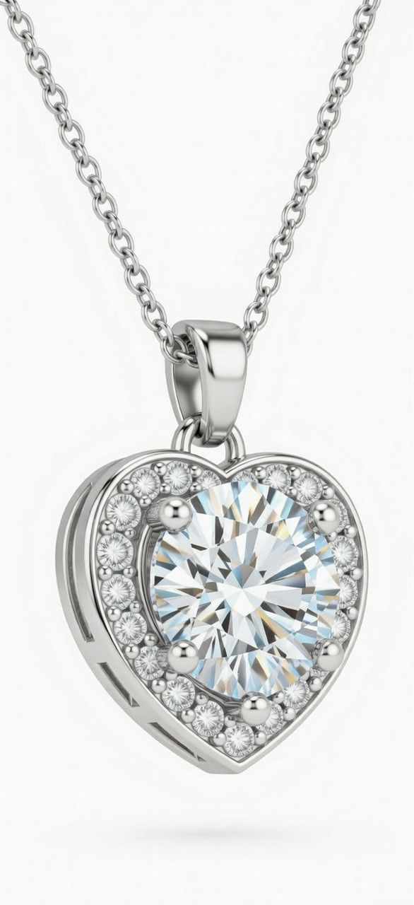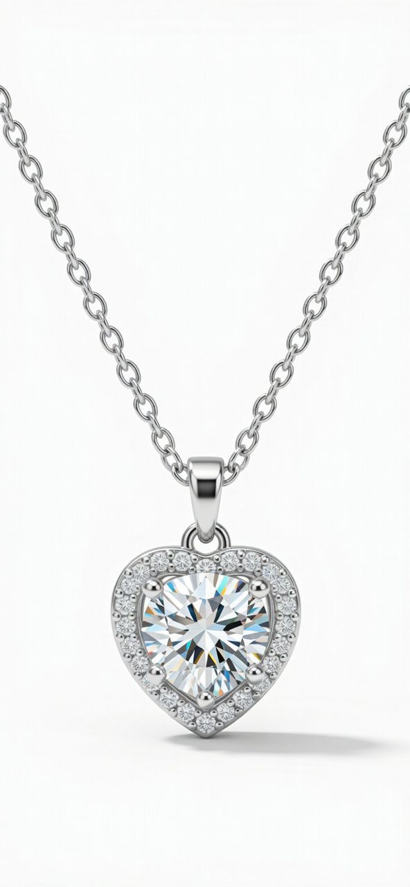 Express your love with this romantic heart-shaped VVS Moissanite pendant necklace featuring a brilliant center stone.