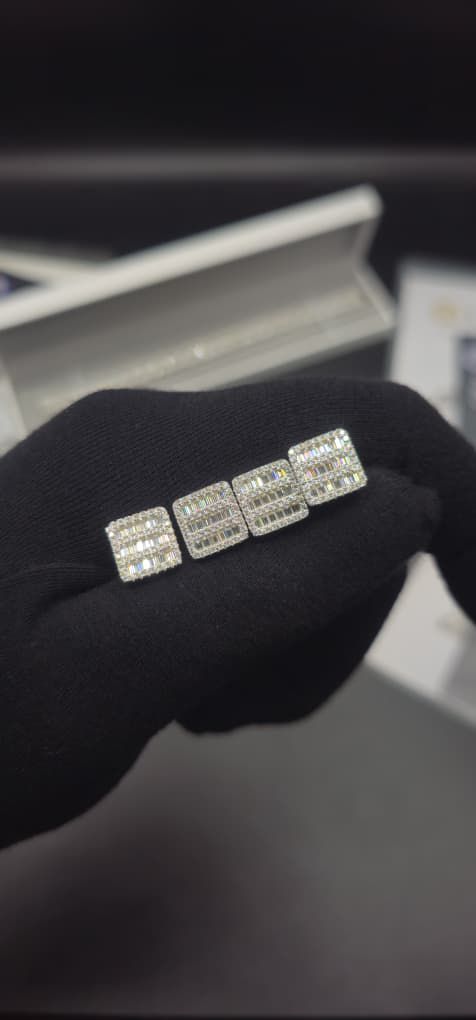 Capture forever with this breathtaking Square 10mm Baguette VVS Moissanite Earring, featuring a brilliant center stone that rivals natural diamonds.